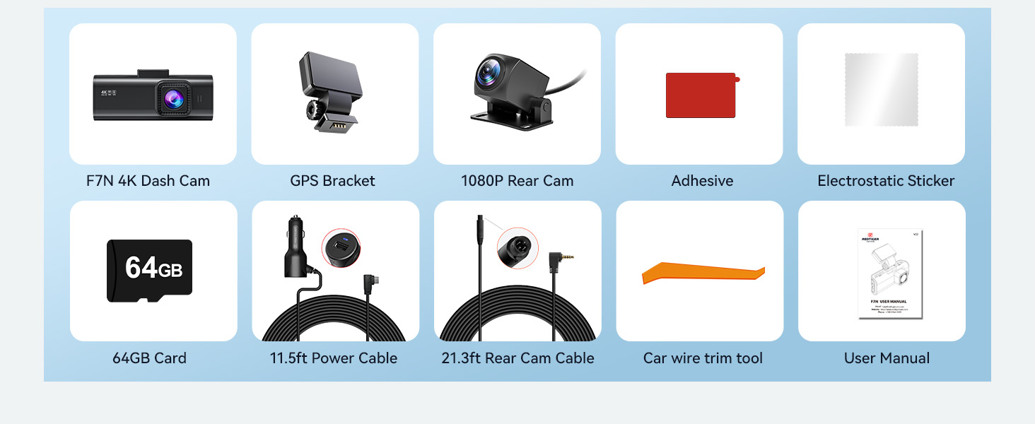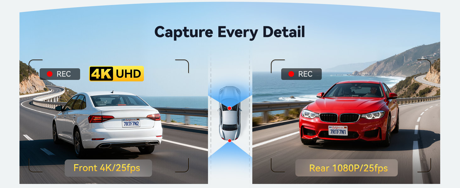- [4K+1080P Front and Rear Recording] Experience crystal-clear footage, the REDTIGER F7N 4K dash cam front and rear capture every detail. Featuring 4K front and 1080P rear resolution with 170° + 140° wide angles, this dash cam records crystal-clear footage day and night. Perfect for road trips, accident evidence, and everyday driving protection — a reliable car camera dash cam front and rear for all conditions.