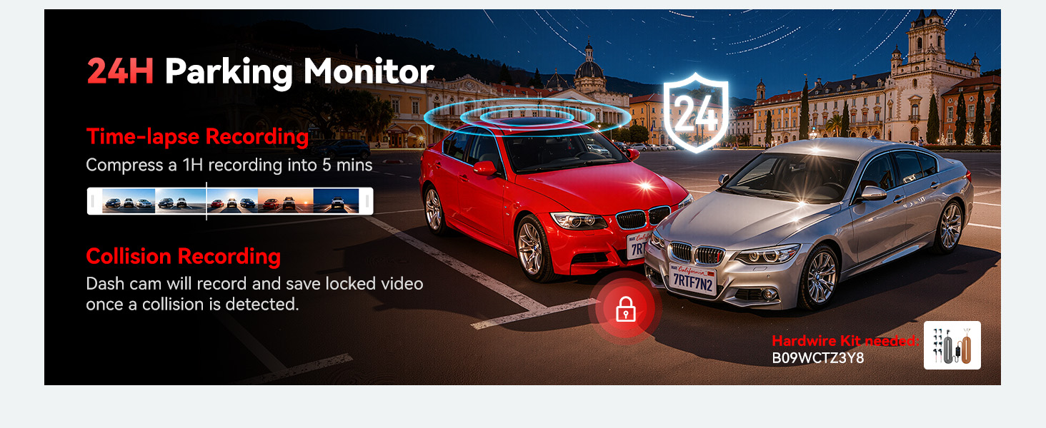 - [24H Parking Monitor & Reliable Support] Stay protected even when your vehicle is off. (Hardwire kit required) This dash cam front and rear 24/7 recording supports motion detection and parking surveillance powered by a supercapacitor — built to withstand extreme temperatures. Comes with 24-hour customer service and an 18-month warranty from REDTIGER, your trusted vehicle camera brand for complete peace of mind.