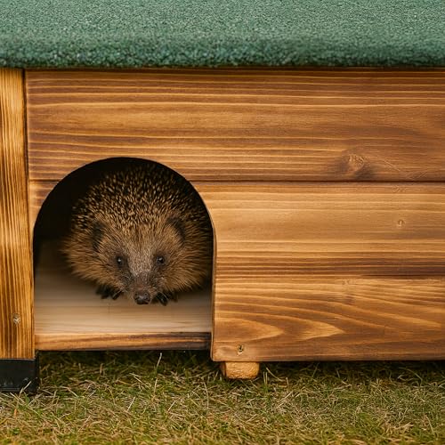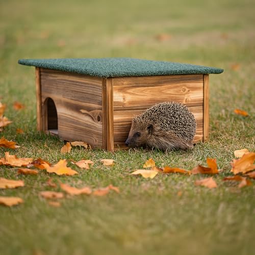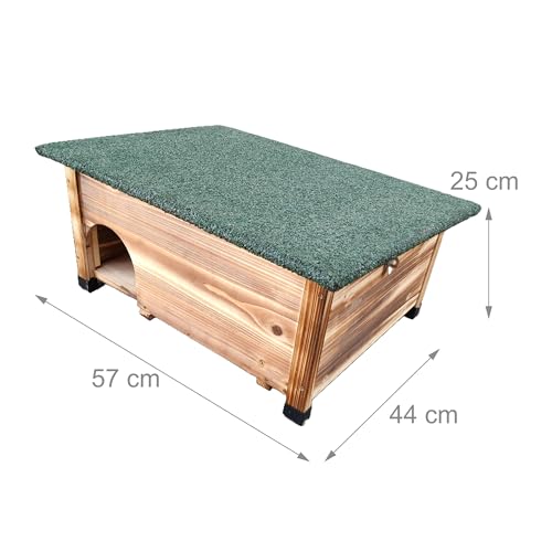 Relaxdays Hedgehog House with Floor, Maze Entrance & Weatherproof Roof, Wood, HxWxD: 25 x 57 x 44 cm, Hedgehog Nes