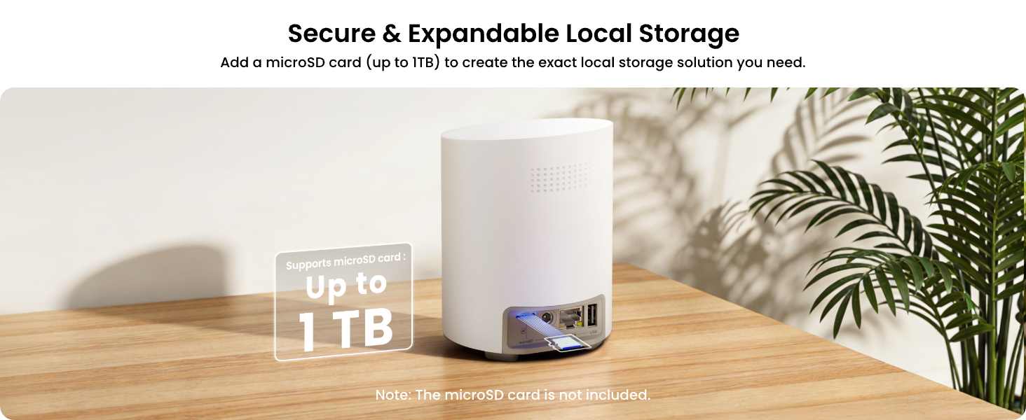 Expandable Local Storage Capacity: Supporting a microSD card of up to 1TB, it provides ample storage space for all your recordings, ensuring all your recordings can be stored locally, without the need for any monthly fees.