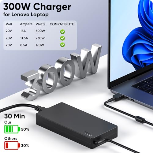 - 【Safety & Service】300W Lenovo Laptop Charger undergoes rigorous quality testing to ensure superior performance. It meets safety standards with multiple protection functions such as over voltage, overload, overheat and short circuit. Lenovo Legion Laptop Charger comes with 12 months hassle-free money back or replacement guarantee
