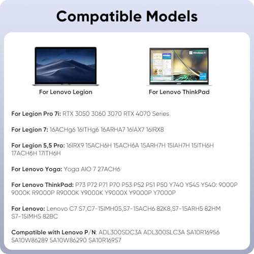 - 【Compatible Lenovo Model】Lenovo Legion Charger Compatible with Lenovo Legion R7000P, R9000K, R9000P, Y9000K, Y9000X, 9000K, 9000P, Lenovo Legion 5 5i 5P 7 7i C7 S7 Y540 Y545 Y740, Lenovo Legion Pro 5 16IRX9 , Legion Pro 5-17ITH6H, Legion Pro 7 16IRX8, Lenovo Legion 7-16ITHg6(82K6), Legion 5-15IAH7H (82RB/82TB), Yoga AIO 7-27ACH6 (F0G7)