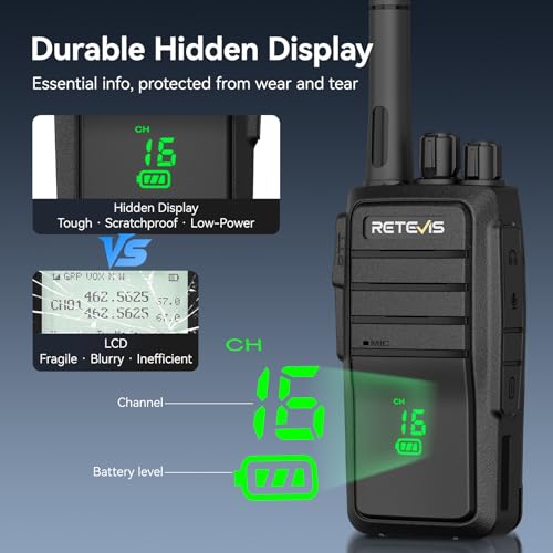 Durable display; Factories and construction industries benefit from gear that lasts; the concealed screen is more durable; power-efficient; and resistant to damage than LCDs; ensuring your walkie talkies with earpiece stay reliable shift after shift