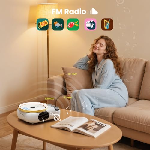 - Loop mode and FM radio: There are 4 playback modes for playing CD and TF card slot music: single, all, random and sequential play. It can also wirelessly receive FM radio stations and listen to your favourite radio stations in real time. The AUX and type interfaces on the back can directly connect other audio devices to enjoy high-quality sound effects.