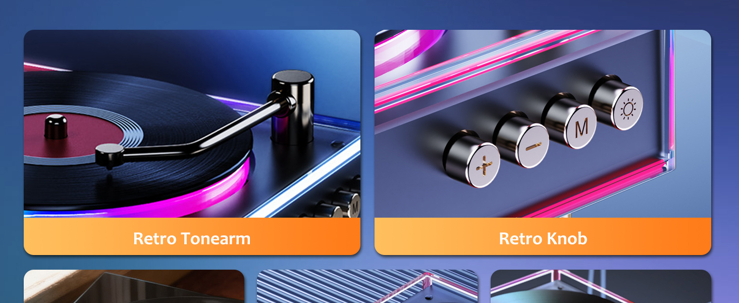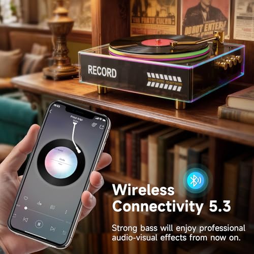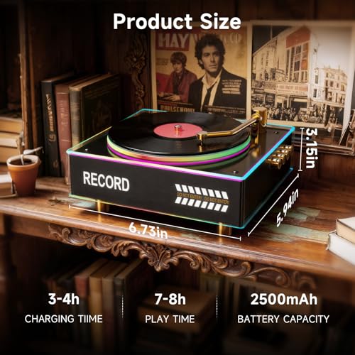 - : This vintage vinyl record-style device is a Bluetooth speaker (it does NOT have turntable/vinyl playback functionality) – it only works as a speaker with audio, RGB lighting and retro aesthetic