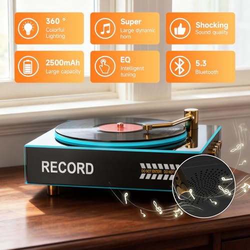 Retro Vinyl Record-inspired Bluetooth Speaker with 360° RGB Color Lighting, Bluetooth 5.3, 10W Sound & EQ Tuning, 2500mAh for 10H Playtime, AUX/USB/TF Support, Vintage Home Audio for Bedroom & Office