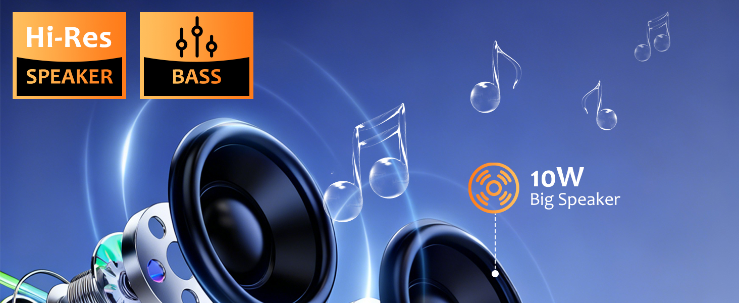 - : This speaker features dual 5W drivers + bass diaphragms, an independent air-tight cavity, and 3 modes (Music/Game/Movie) for immersive audio—great for game sound localization