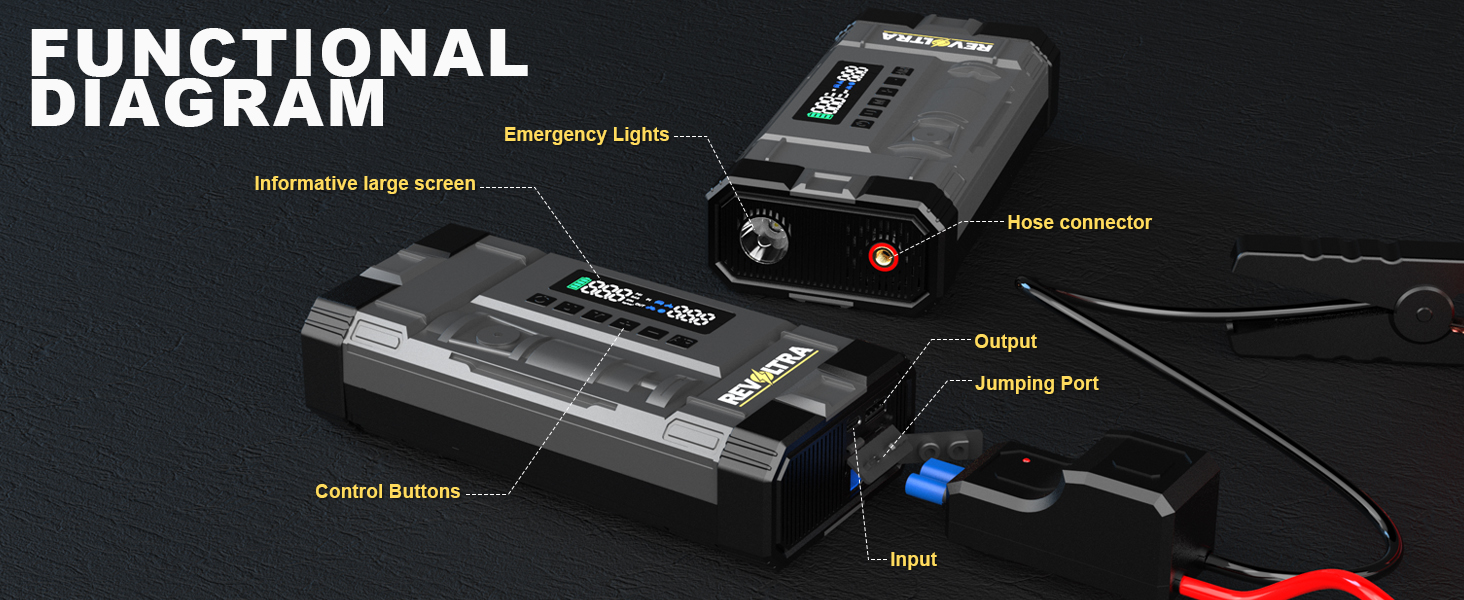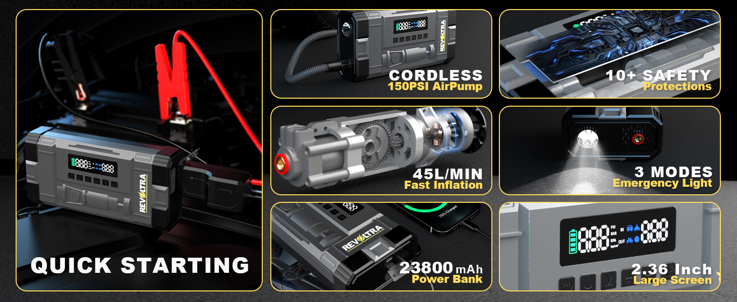 Revoltra 9-in-1 Jump Starter Power Pack With 150PSI Air
