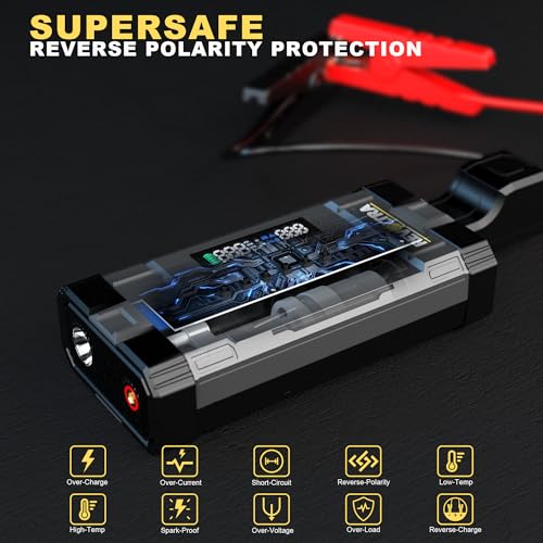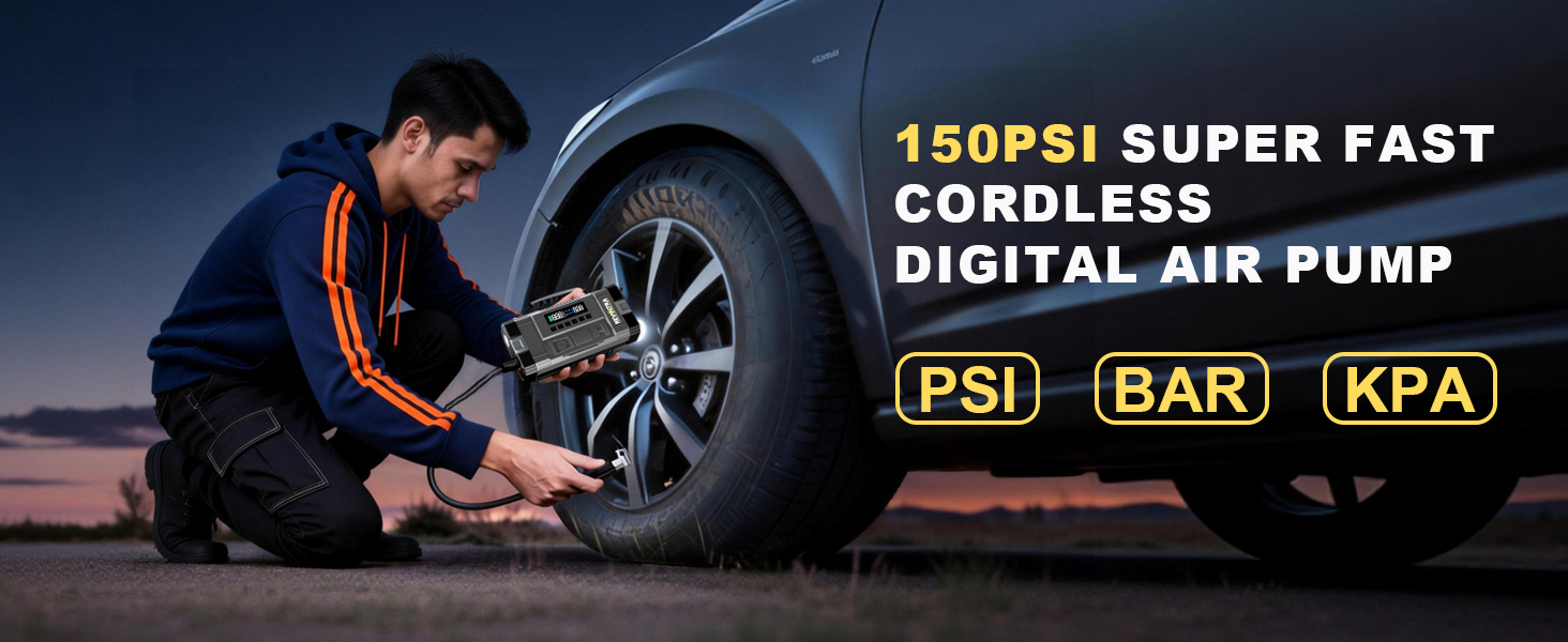 Premium 9-in-1 Emergency Power Solution: Combines a 12V jump starter, 150 PSI air compressor, high-capacity 23,800mAh power bank, LED flashlight, safety gloves, and essential accessories—everything you need for roadside and outdoor emergencies.