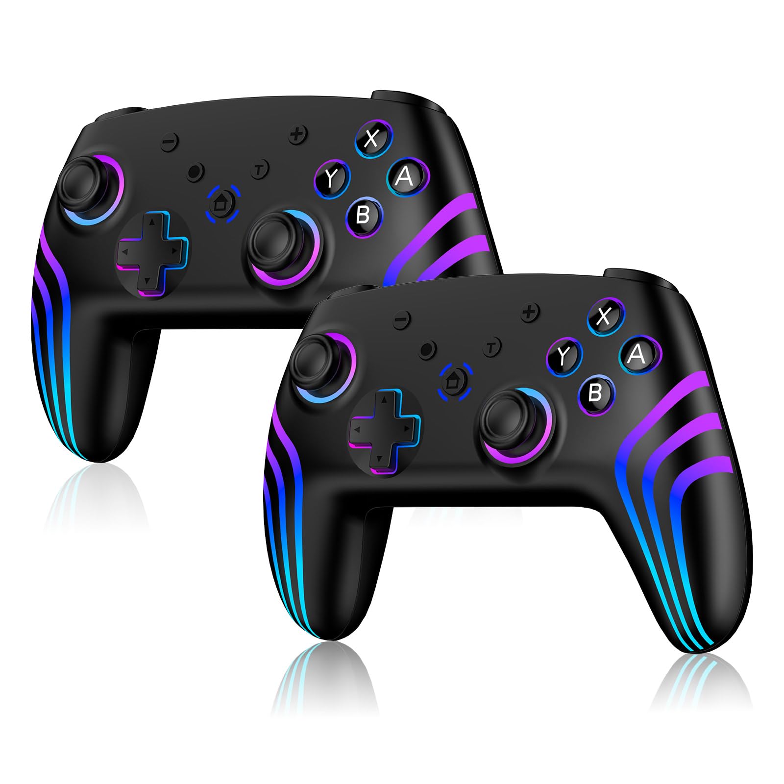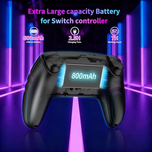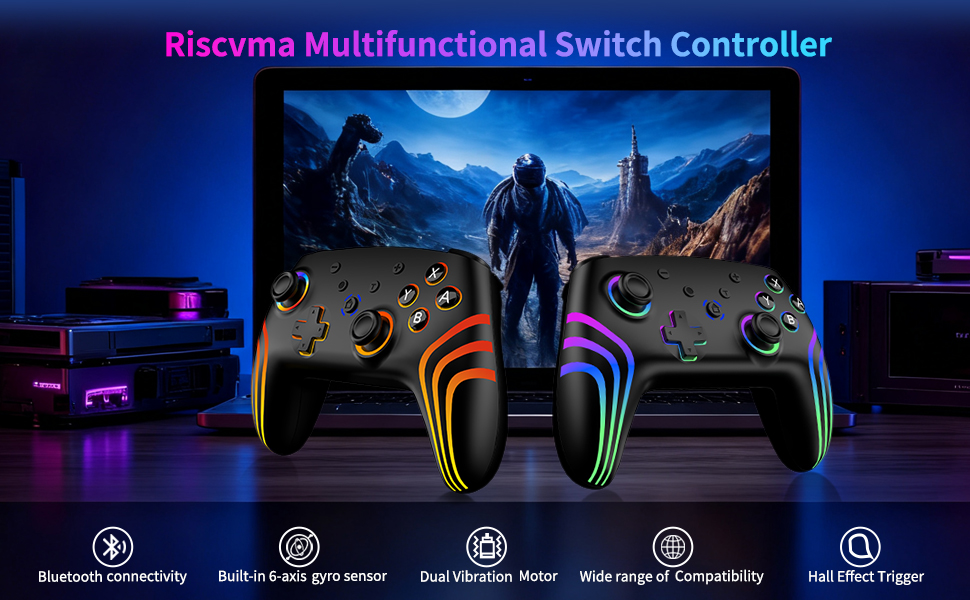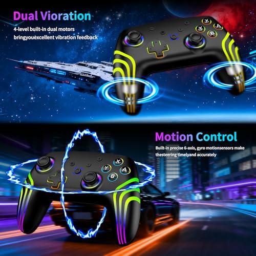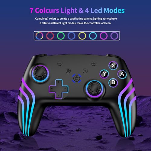 Riscvma 2pcs Controller for Switch/Switch 2/Lite/OLED/PC, Wireless Controller for Switch with 7 Color Changing RGB Lighting/Dual Vibration/6 Axis Gyroscope/Turbo, Ergonomic Precise Joystick