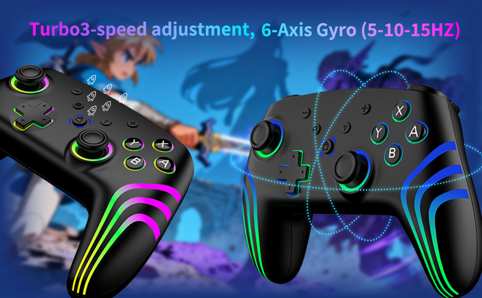 - 【Dual Vibration and Adjustable Turbo】 Equipped with two vibration motors, the controller for Nintendo Switch supports three precise vibration settings (none, low, and high) for excellent vibration feedback. The Turbo function offers automatic and manual modes with three adjustable speeds (5, 10, and 15 Hz), optimized for shooters, so you can easily win.