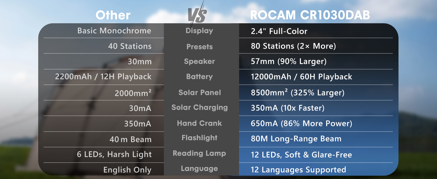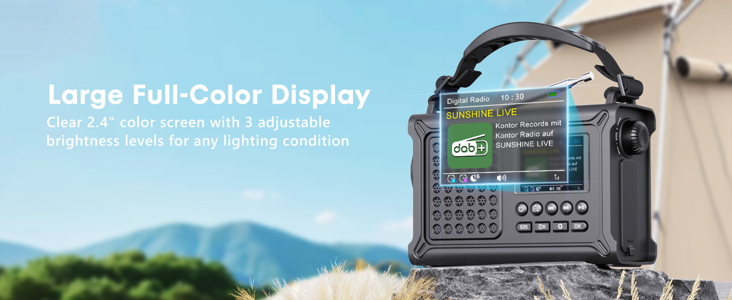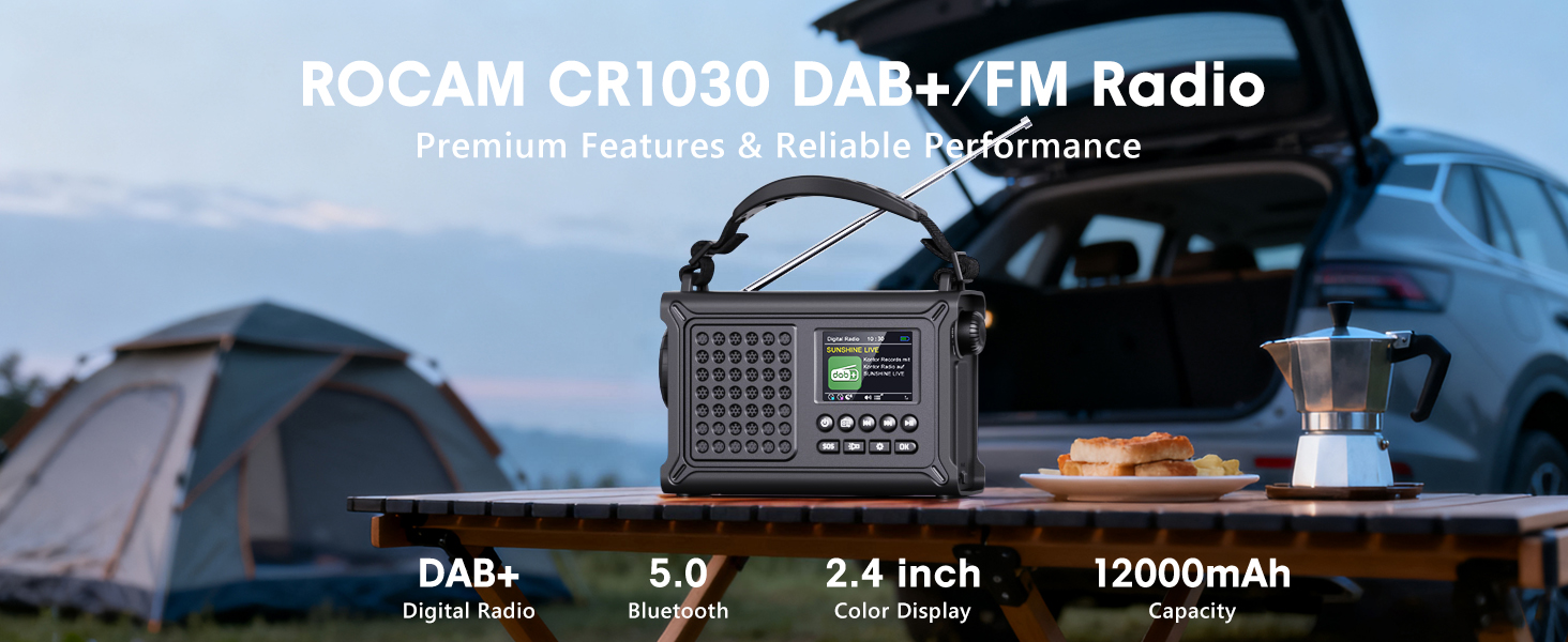 All-New ROCAM CR1030DAB Emergency Radio – Upgraded with DAB+ chip, bluetooth, 57 mm full-range speaker, 12000mAh rechargeable battery, and LCD color display for better sound and longer power