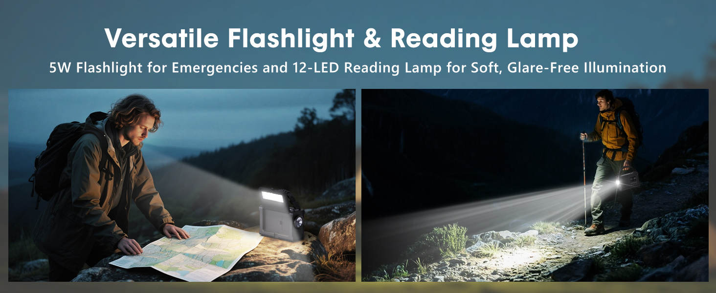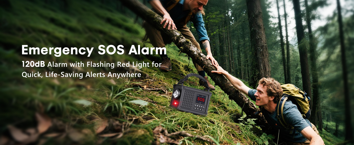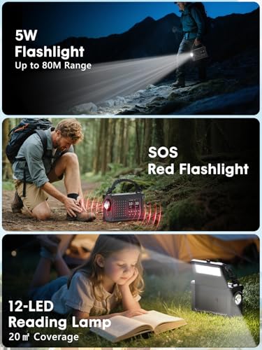 Designed for emergencies, the built-in 12,000mAh battery provides hours of power for your phone, lights, or radio. Equipped with a 120dB SOS alarm and flashing light, it ensures you can be seen and heard in critical situations