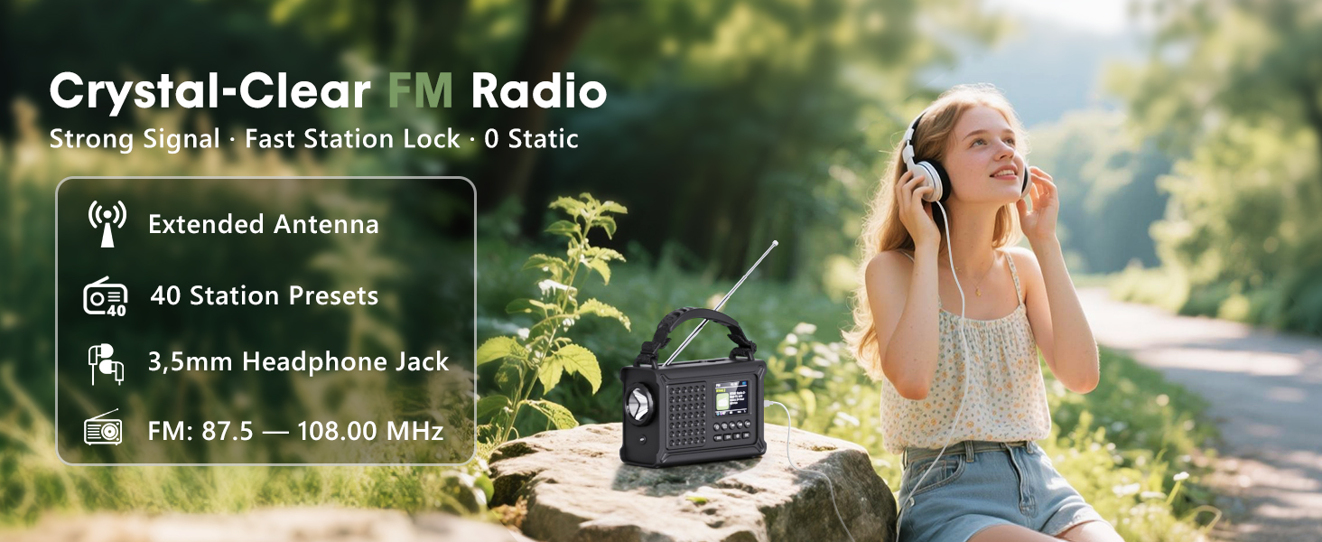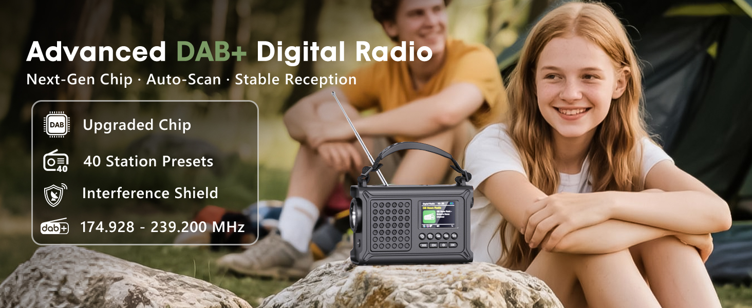 Wind up radio uk with high-sensitivity chip locks DAB+/FM signals, reduces noise, and supports 80 station presets with one-touch tuning