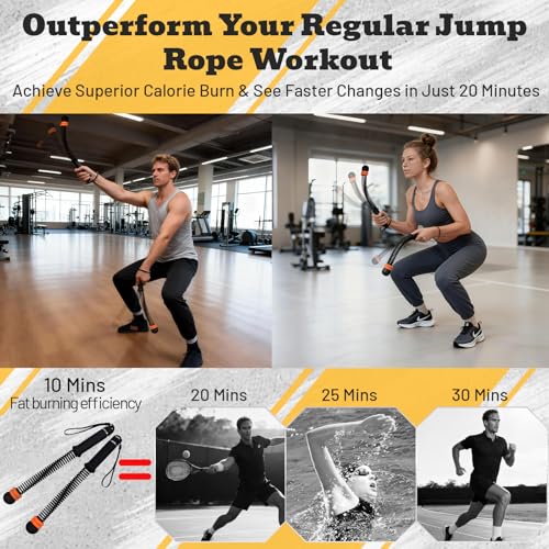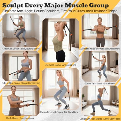 【Advanced Calorie Burn & 2X The Results】- Achieve more in less time. Our training rope is scientifically designed to burn up to twice the calories of traditional jump rope exercises. A single 20-minute HIIT (High-Intensity Interval Training) session ignites your metabolism, incinerates fat, and drives deep core engagement through powerful eccentric contractions, effectively shaping your arms, shoulders, back, and glutes for a total-body transformation