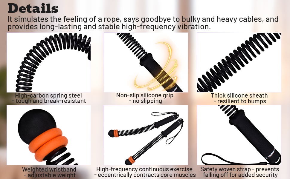 【Precise Targeting for Stubborn Areas】- Tackle your most challenging fitness goals. Crafted from premium steel with a durable anti-wear coating, this rope is built to endure the most demanding workouts without bending or breaking. The intense, high-frequency vibrations create forceful eccentric contractions that zero in on upper and lower body problem zones, promoting lean muscle growth and enhancing overall posture