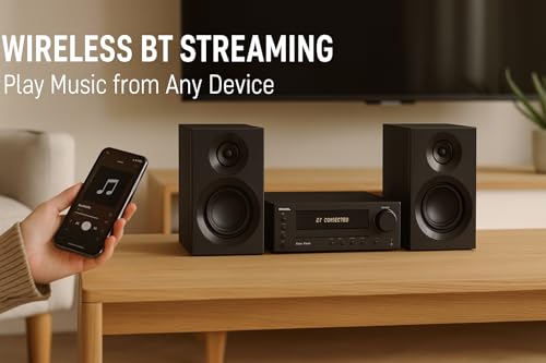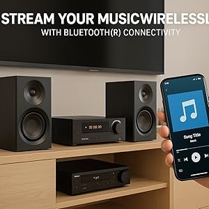 - Wireless BT streaming made easy: pair phones, tablets or laptops in seconds and play playlists, podcasts and internet radio through the Hi-Fi speakers. Stable BT 5.0 connection for reliable, low-latency playback with simple play/skip/volume control.
