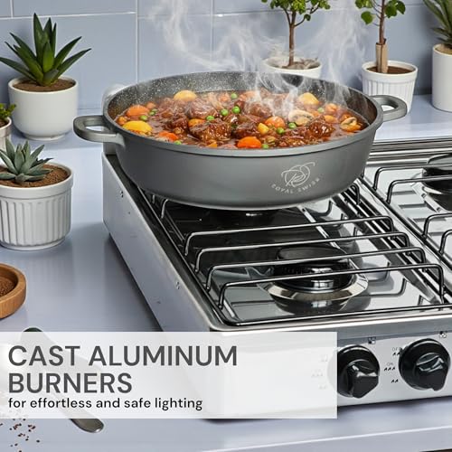 - DIE-CAST ALUMINIUM BURNER: Heat resistant, durable and ideal for heavy duty use.
