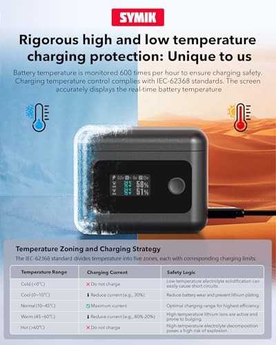 - Unparalleled Intelligence: Comes with a 0.96" crystal-clear OLED screen which allows you to monitor your battery and charging status at a glance with comprehensive data, including: Battery State of Charge (SoC / Charge Level), Charge Power, Voltage, Current, Battery State of Health, Cycle Counts, Available Capacity, Full Charge Capacity, Temperature (Celsius and Fahrenheit), USB-C port Voltage and Power Source Capabilities (Available Power)