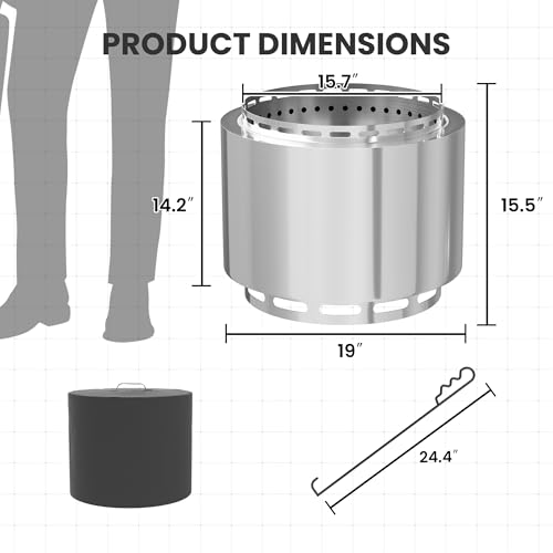 RTDTD 19 Inch Smokeless Fire Pit, Wood Burning, Portable