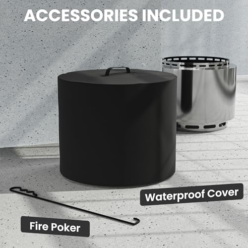 RTDTD 19 Inch Smokeless Fire Pit, Wood Burning, Portable Outdoor Fire Pit with Waterproof Cover & Poker for Garden, Patio, Camping, Stainless Steel