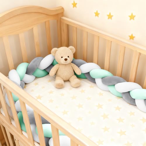 - [Bionic Design]: This anti-collision head braided knot cushion width: 10~12 cm, let it cover the entire perimeter of the bed providing a soft cushioning barrier