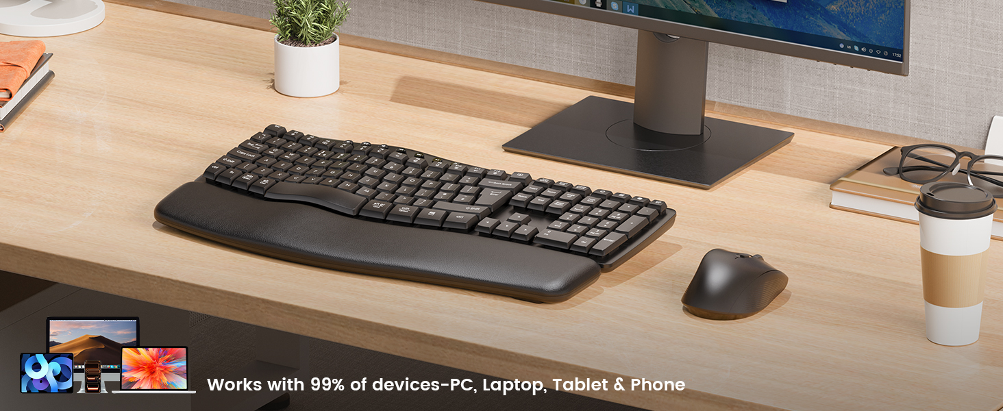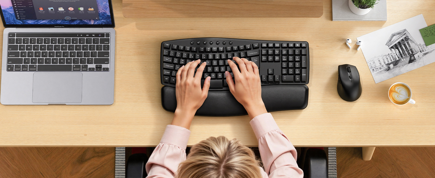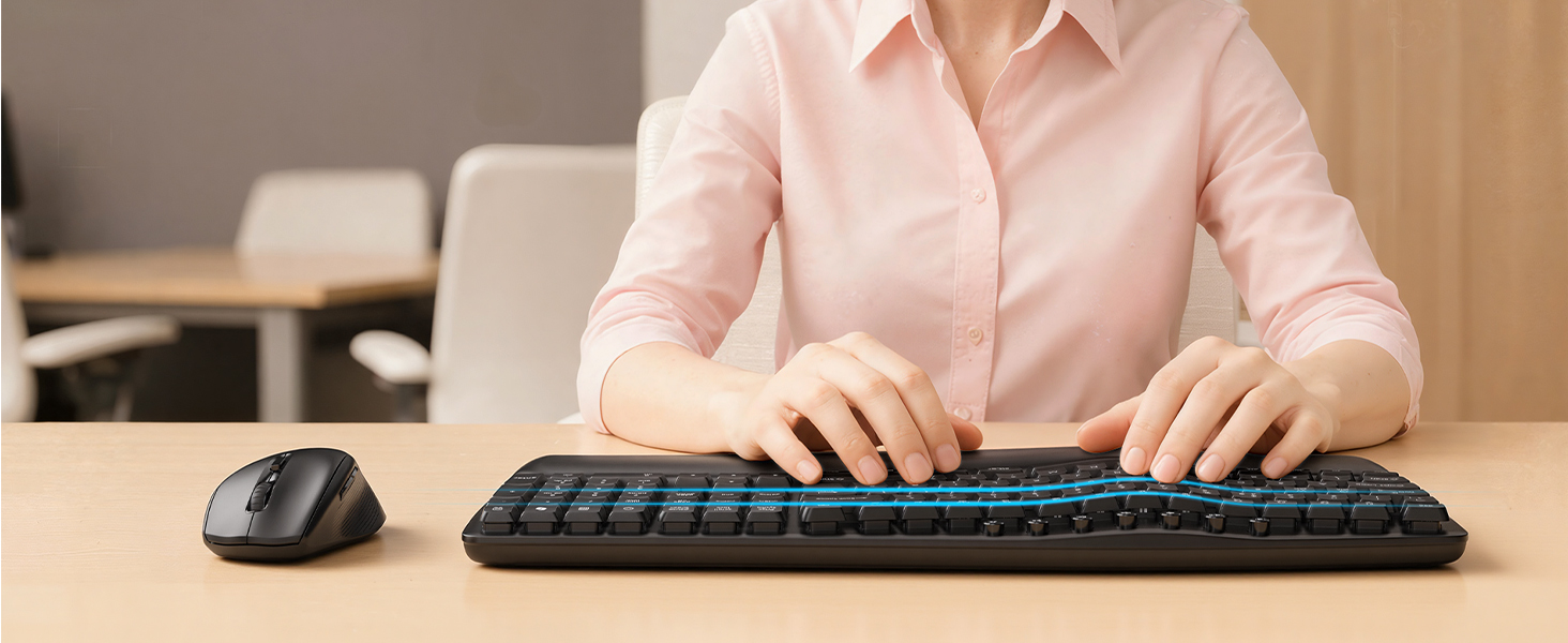 - Ergonomic Wave Keyboard: Work comfortably for 8+ hours with this ergonomic wave keyboard, keeping hands and wrists in a natural position. Unlike flat keyboards, it reduces 40%+ daily strain and fatigue, perfect for home offices, remote working, or professional office desks