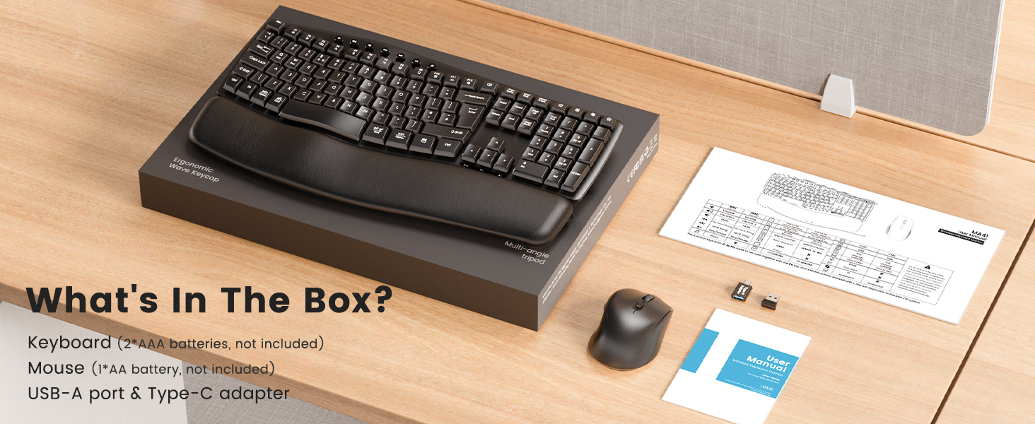 - Easy Setup & Power: Keyboard uses 2 AAA batteries, mouse 1 AA (not included). The USB receiver is stored inside the mouse for plug-and-play setup, allowing both devices to work instantly and hassle-free