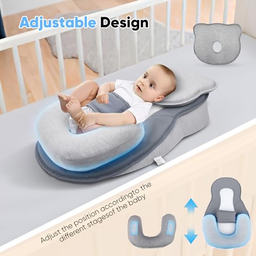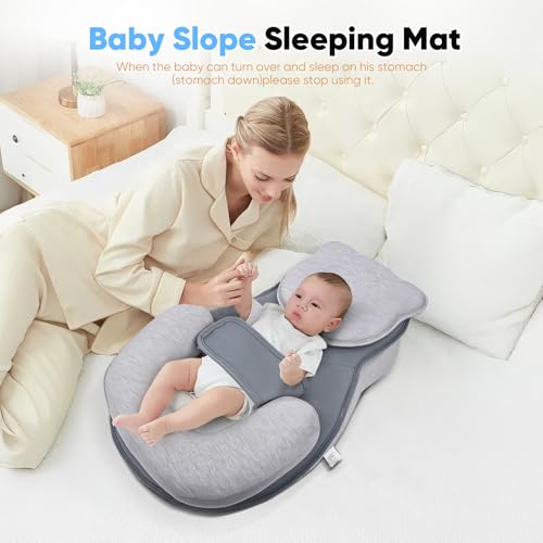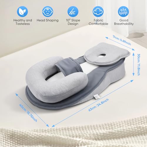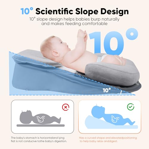 [Nursing Pillow for Anti-Reflux & Spit-Up]: The pillow's slight incline provides a natural position for your baby during feeding, supporting comfort and reducing strain. The soft yet firm surface keeps your baby in a stable position for safe feeding, effectively reducing spit-up and reflux.