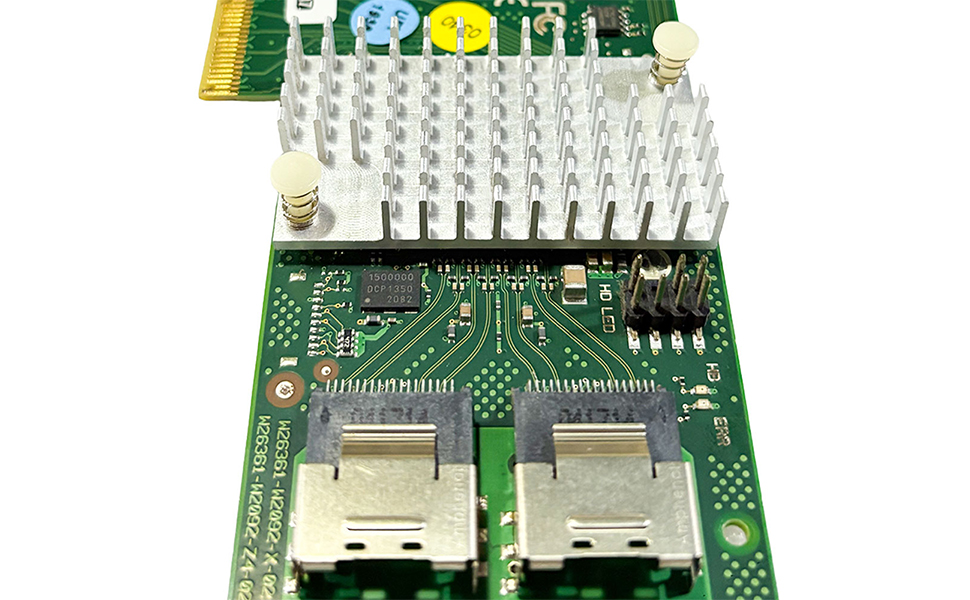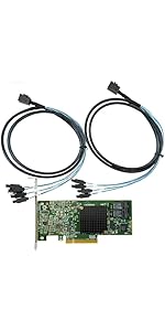 - Host Interface: PCIe 2.0 x8; Internal Connectors: 2× Mini-SAS SFF-8087. –Direct attach up to 8 drives, and expand via external SAS Expander for large arrays
