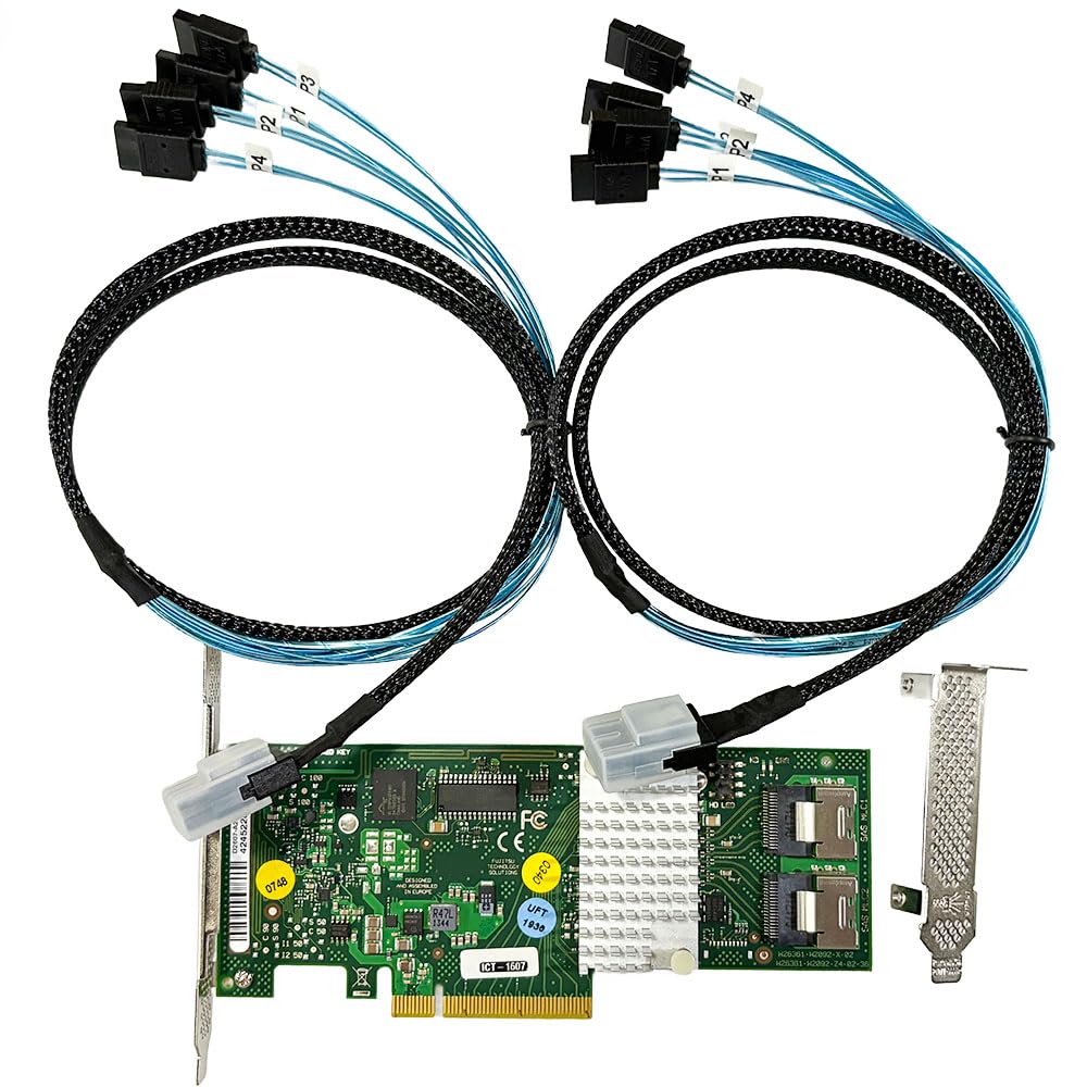 2x SFF-8087 to 4x SATA Cables, 8-Port 6Gbps PCIe 2.0