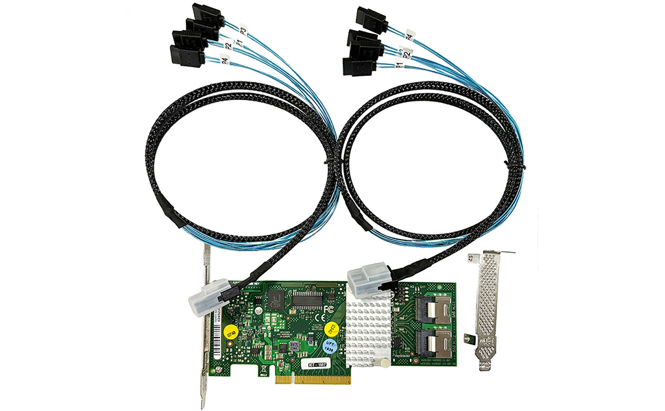 - Packing List: HBA Card ×1; SFF-8087 to 4× SATA Cables ×2. –Cables in box are for SATA drives. They are not compatible with SAS drives. To connect SAS drives, use SFF-8087 to 8482 SAS cables (sold separately) or our matched HBA + cable kit