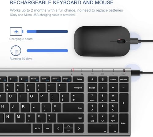 Being able to charge both keyboard and mouse with included USB C cable, you will save the hassle of replacing batteries