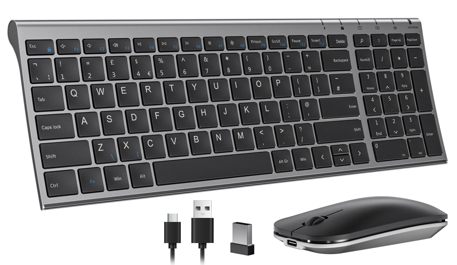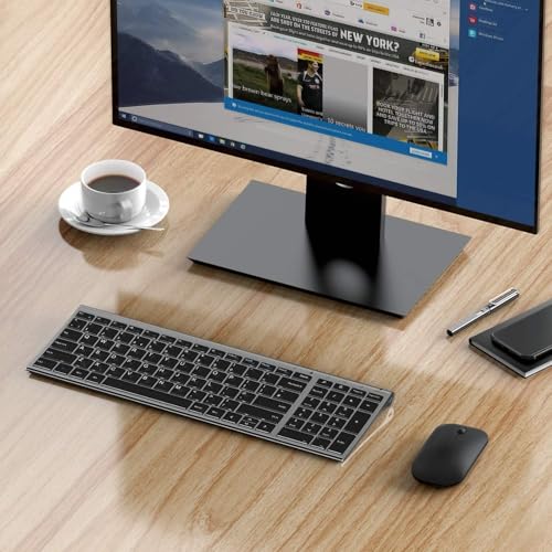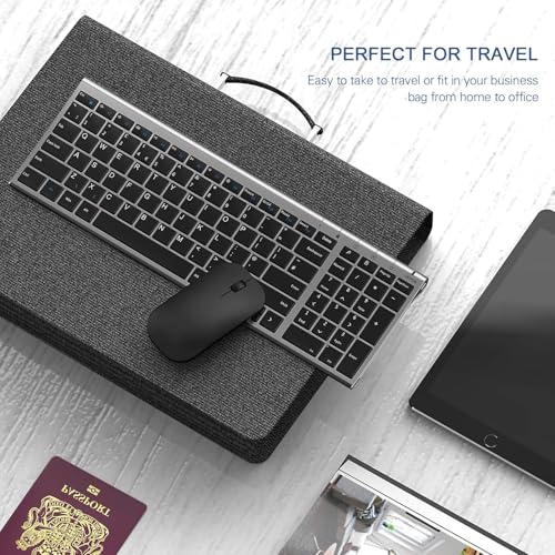 seenda Wireless Keyboard Mouse Set, Ultra Slim Compact Rechargeable Silent Computer Keyboard & Mouse Combo with Metal Base UK QWERTY Layout for Office, Home, Business Trip, Black and Space Gray
