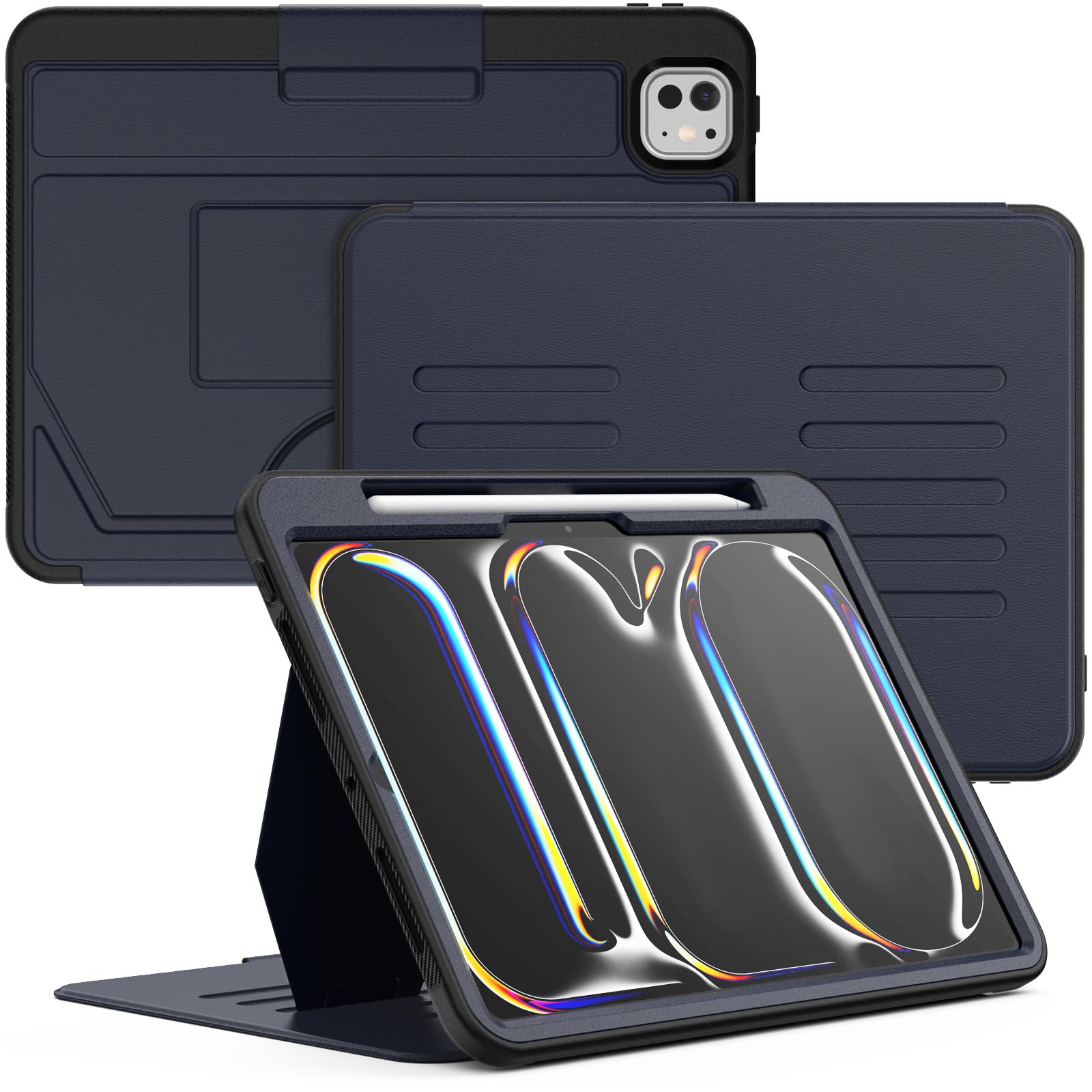SEYMCY Case for iPad Pro 11 Inch 2025(M5)/2024(M4) (Not suitable for 2018~2022 versions), Smart Cover with 5-angle Magnetic Stand, Auto Sleep/Wake, Pencil Holder, Card Slots, Navy Blue
