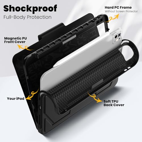 【Full-body Protection】This case for iPad Pro 11 inch 2025/2024 released is made up with high quality magnetic PU leather front cover, sturdy hard plastic frame and soft outer TPU skin. All-round protection design to keep your tablet away from scratches, shocks, dusts and drop damages. (please note: no built-in screen protector included)