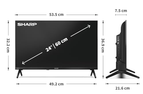 Experience superior entertainment with the Sharp 24HE2245K HD Ready TV. This compact 24-inch LED display features a crisp 1366 x 768 resolution and impressive 100,000:1 contrast ratio, delivering vibrant visuals with HDR10 and HLG support. Powered by TiVo OS, this smart TV offers seamless access to popular streaming services including Netflix, Disney+, BBC iPlayer, and more. The comprehensive connectivity includes three HDMI ports, two USB inputs for media playback, and built-in Wi-Fi. With its sleek design measuring 535 x 369 x 216 mm (with stand), this versatile TV fits perfectly in bedrooms, kitchens, or smaller living spaces. The dual 10W speakers provide clear audio output, while the included infrared remote and smartphone control options ensure convenient operation. Wall-mounting is possible with VESA 100 x 100 compatibility, offering flexible placement options. The TV comes with Freely integration for enhanced smart features and seamless content discovery.