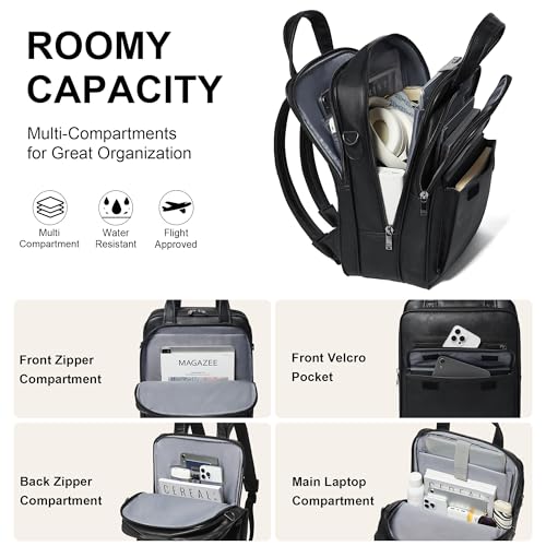 MULTI-COMPARTMENT LARGE CAPACITY BACKPACK: Simple and utility backpack can easily hold laptops,A4 files,magazines,tablets,chargers,and other work items,with dimensions of 12.59"x5.3"x16.14" and a weight of 3.23lbs.The laptop backpack women consists of 4 compartments,including 2 front pocket,1 front compartment,1 main compartment with a laptop pocket and 1 back compartment.The multi-compartment design of this office backpack helps you to keep your personal items well organized