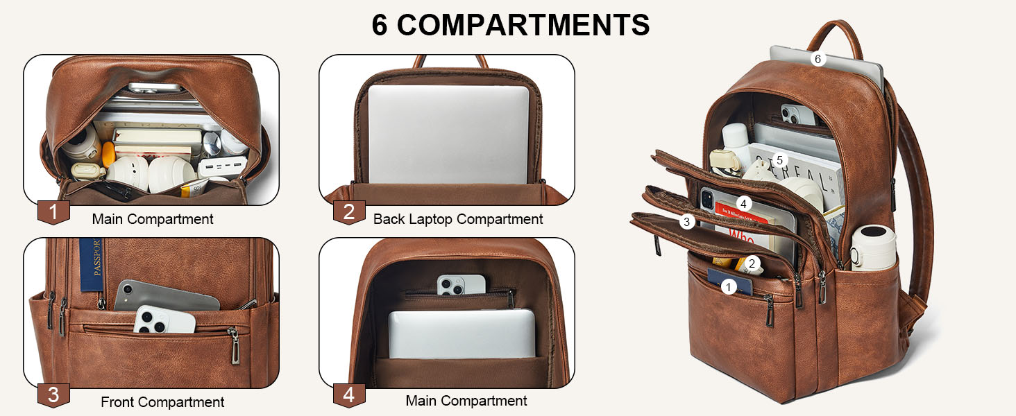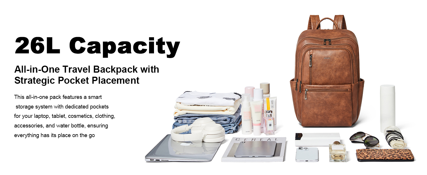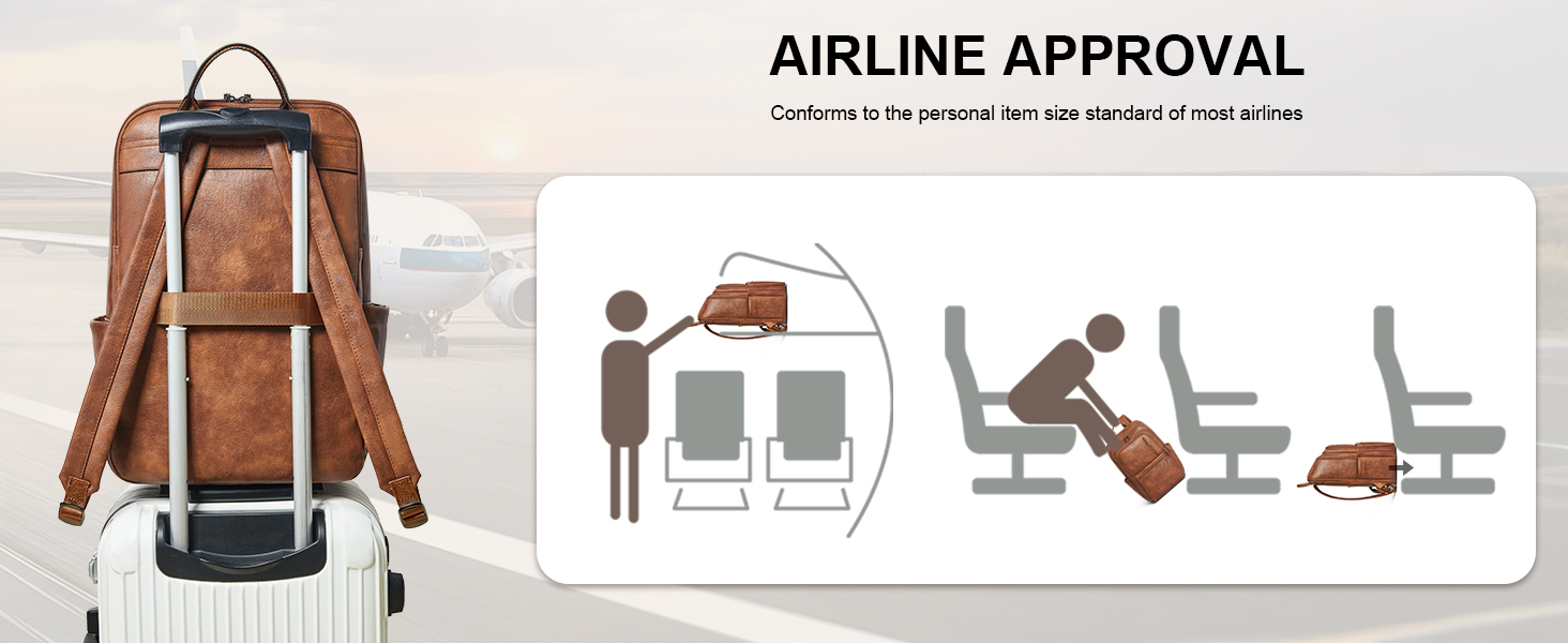 【Practical Backpack Luggage Strap Design】This 17 inch laptop backpack is designed for travel, helps free your hands and alleviates back strain, enhancing comfort and convenience on the go. As a compact, waterproof carry-on, it easily fits under airplane seats and complies with standard airline size requirements.(Leather backpacks may have a slight odor. Simply leave it in a well-ventilated area for 2–3 days and the smell will fade.)