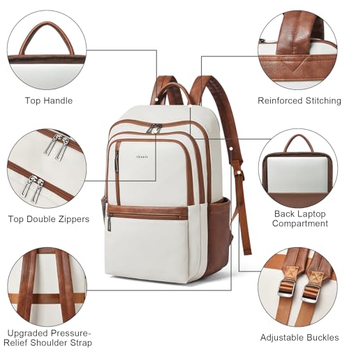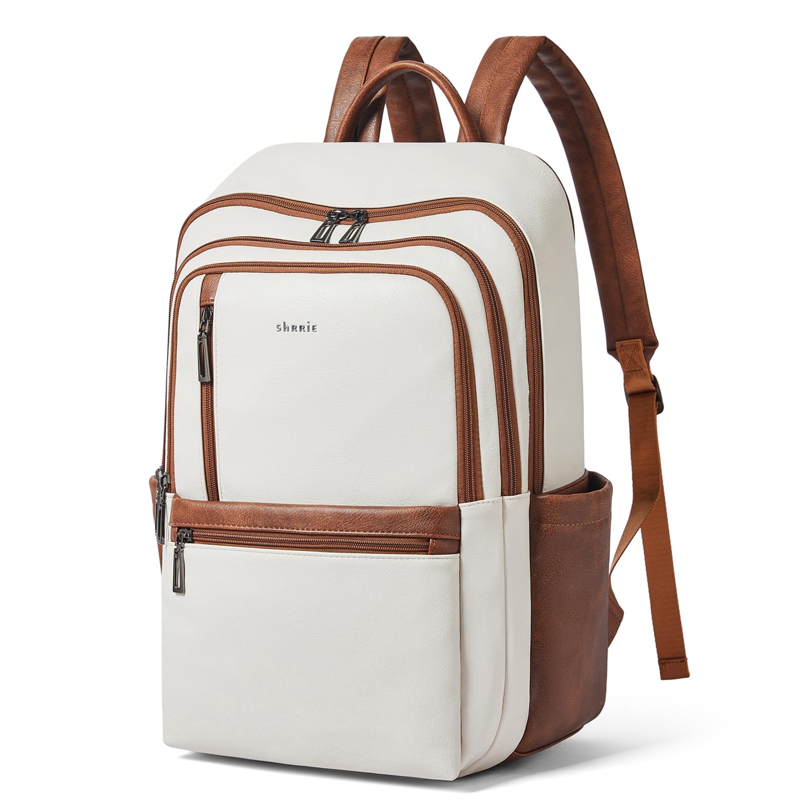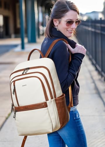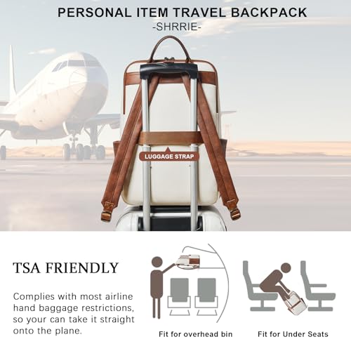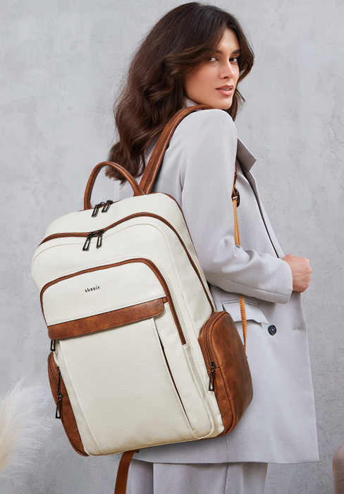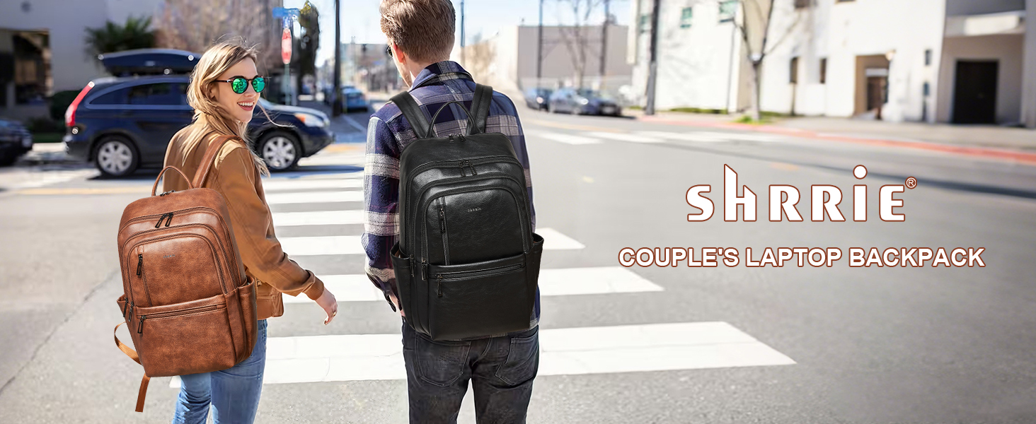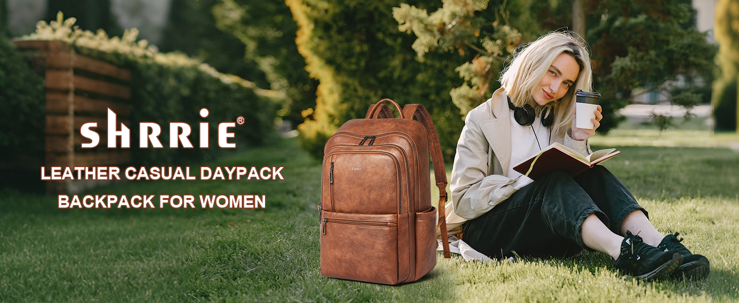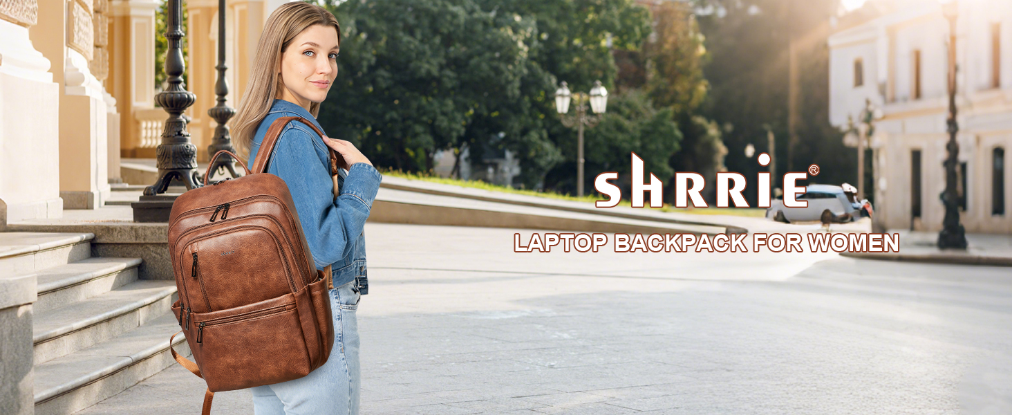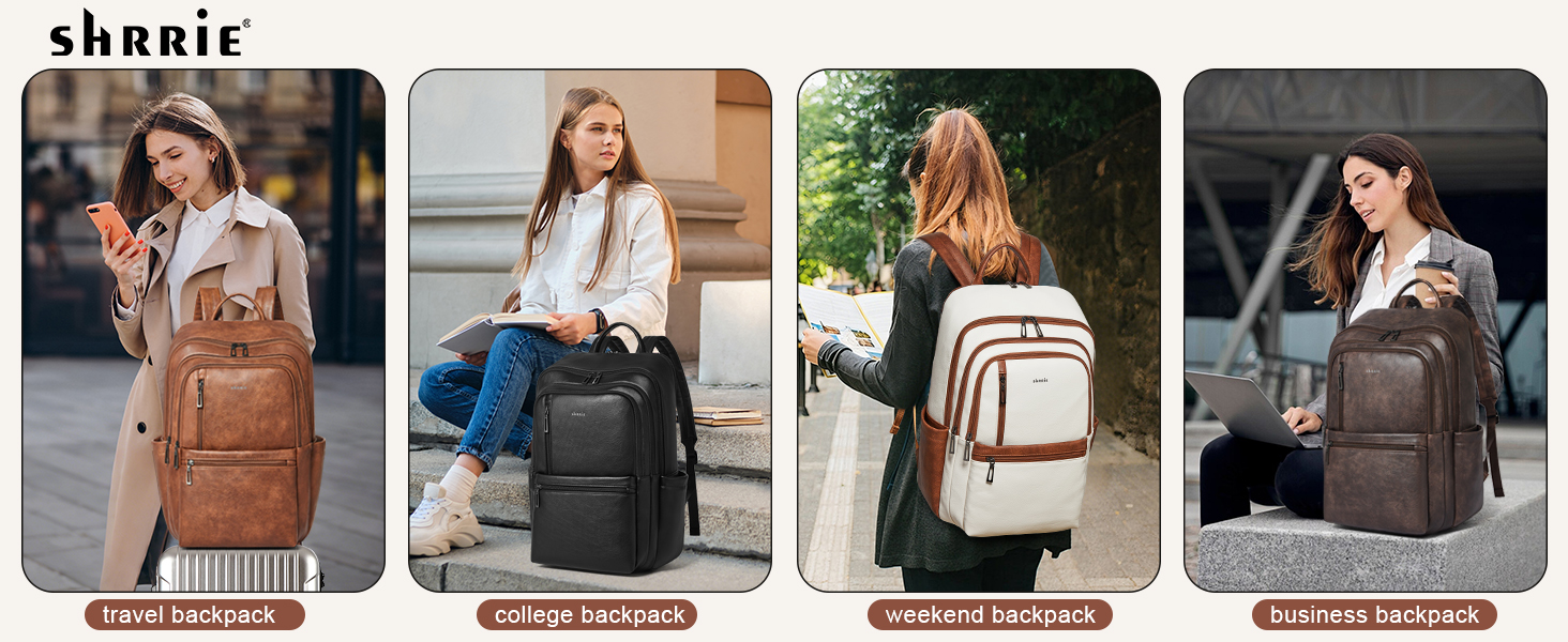 【PREMIUM MATERIALS】Shrrie Laptop Backpack for Women crafted from premium, soft, and durable waterproof PU leather. It features a high-quality fabric lining, robust metal hardware, smooth zippers, and exquisite craftsmanship. With reinforced stitching and a waterproof design, it's a reliable choice for commuting, hiking, or getaways. Furthermore, its simple and unisex design makes it not just a women's backpack, but also a perfect laptop bag for anyone—even as a stylish couple's bag.