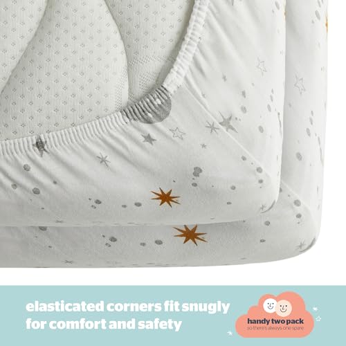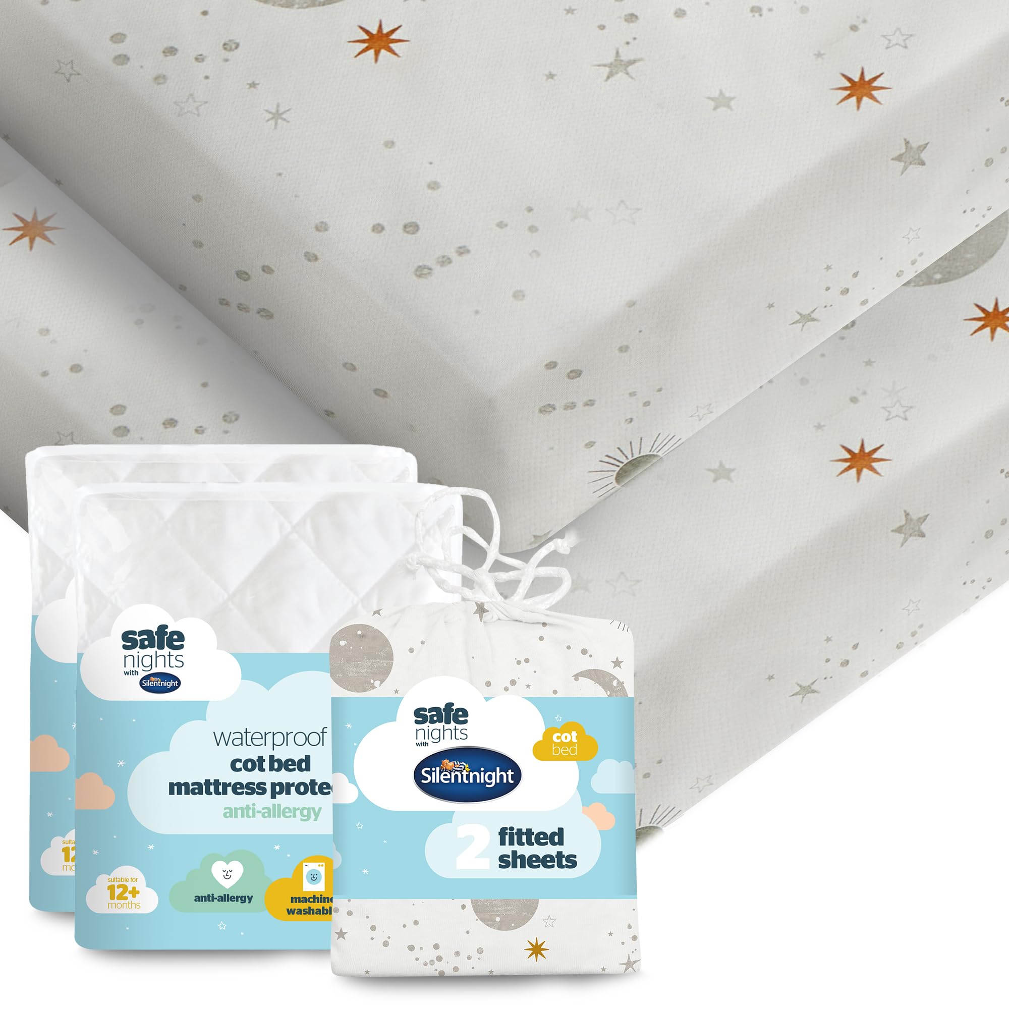 Silentnight Safe Nights Cot Bed Waterproof Mattress Protector & Fitted Sheet – Kids Baby Nursery Bed Pad Protection Against Spillages – 100% Cotton Super Soft – Machine Washable, 2 Pack, Celestial