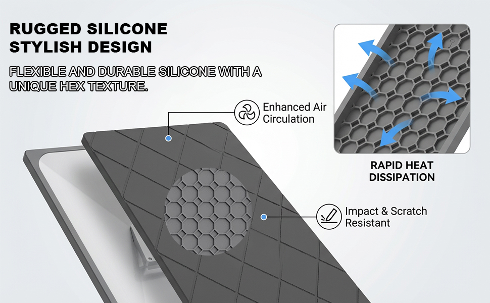 - Stylish Hex Design: Featuring a unique hex texture, the cover enhances air circulation, enabling rapid heat dissipation. This stylish design not only looks great but also improves shock absorption.