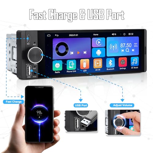 - 【Bluetooth 5.0 Hands-Free & Music Streaming】Enjoy clear Bluetooth hands-free calls and stable wireless audio streaming. The Bluetooth car stereo supports Spotify, YouTube, and other apps, letting you play your favourite songs while keeping your hands safely on the wheel