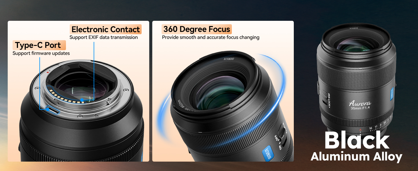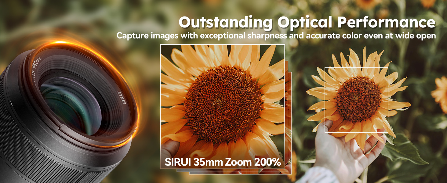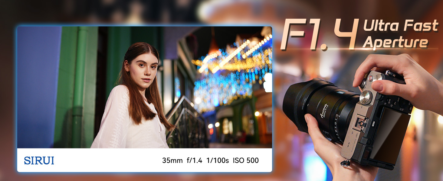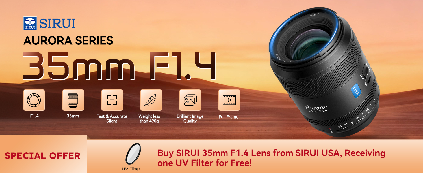 - Unparalleled Image Quality: SIRUI AURORA 35mm F1.4 offers outstanding sharpness throughout the frame right up to F1.4, maintaining a superior high resolution when scaled 2x or larger. Aspherical lens, ED glass, and HRI glass are added for suppressed chromatic aberration and authentic color rendering.