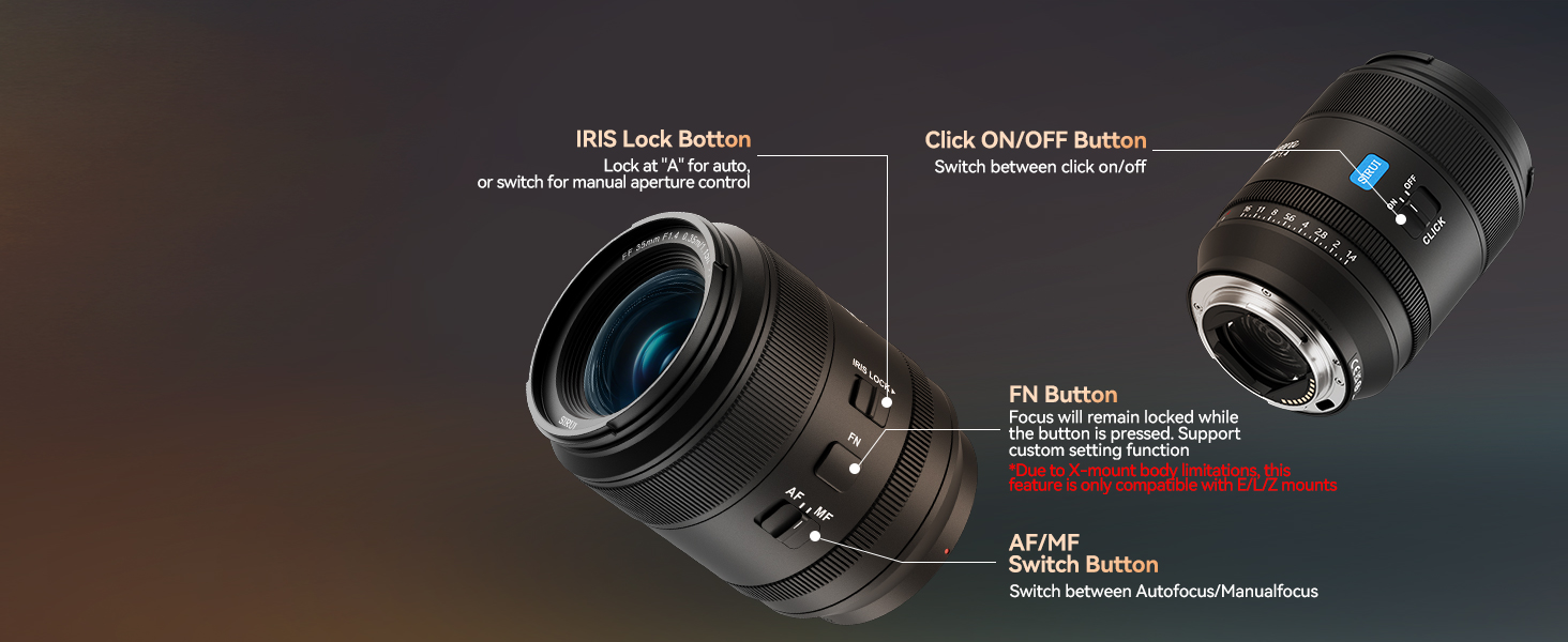 - Professional Lens Control: An AF/MF focus mode switch, AFL button, and aperture ring with switchable click stops provide flexible controls of the lens to meet individual needs.