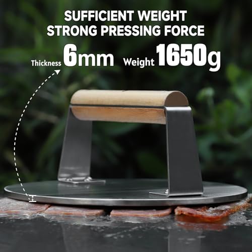 SKY FISH® Stainless Steel Smash Burger Press, 1650 g Heavy‑Duty Bacon & Hamburger Grill Press with Wood Handle, 8.5″ BBQ Press Tool for Steak, Meat & Pancakes