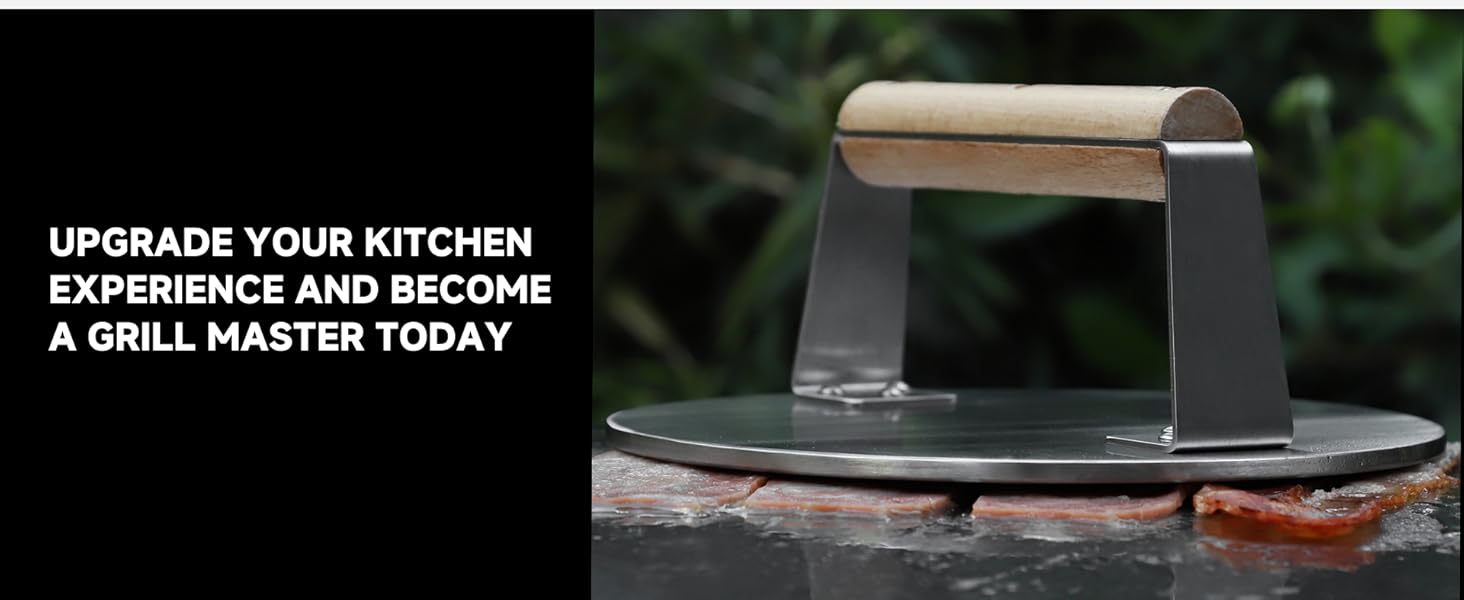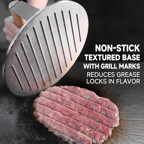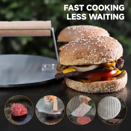 - Ultra Versatile Cooking Functions: Handles far beyond burgers—great for pressing steak, grilling bacon & sausages, making paninis or grilled cheese, and using on grills, griddles, or pans.