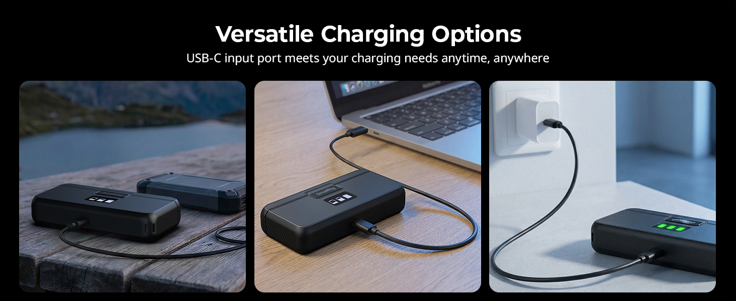 WIDE COMPATIBILITY & SECURE BUILD:Fully compatible with batteries for GoPro HERO 9/10/11/12, this charger ensures broad usability. Built with reliable circuitry and multiple safety systems. This battery charger for Go Pro includes safeguards against short circuits, overcurrent, overcharge, over-discharge, and extreme temperatures. Constructed from fire-retardant ABS+PC materials, it guarantees safe and stable charging every time.