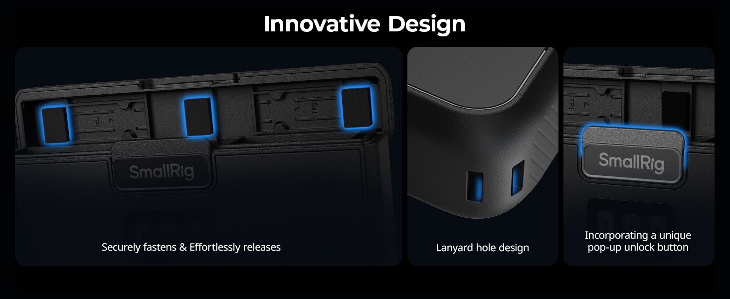 POP-UP UNlOCK BUTTON:The charger for gopro battery features a unique pop-up unlock button for easy, one-handed battery release and secure fastening. This ergonomic design enhances operational safety and convenience.