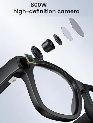 Ultra-Wide-Angle HD Camera – The smart glasses feature a 800W pixel anti-shake lens to capture clear photos and recording video. It is suitable for shooting first-person perspective footage and recording the exciting moments of your life.